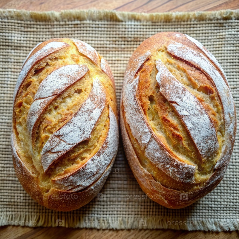 Два свежевыпеченных ломтика домашнего хлеба на деревенском подстилке
