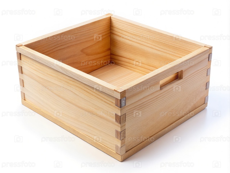 Пустая деревянная коробка с ручкой, изолированной на белом фоне