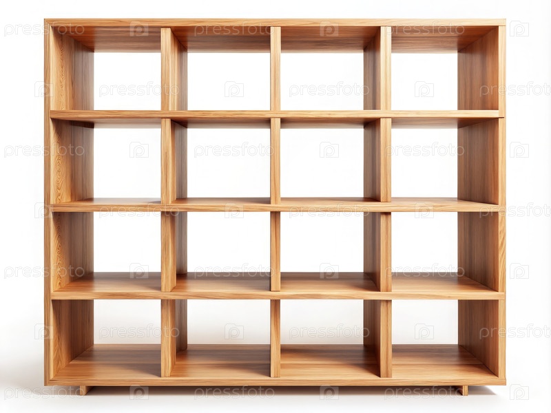 Пустая деревянная книжная полка с несколькими кубическими отверстиями, изолированными на белом фоне