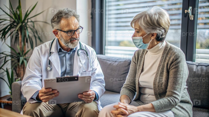 Врач обсуждает план лечения со старшим пациентом в кабинете