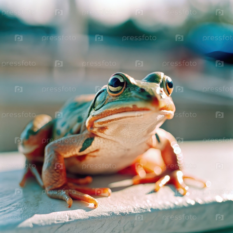 Близкий портрет зеленой лягушки на солнце