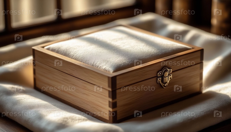 Рустическая деревянная коробка с мягкой пастельной льняной тканью
