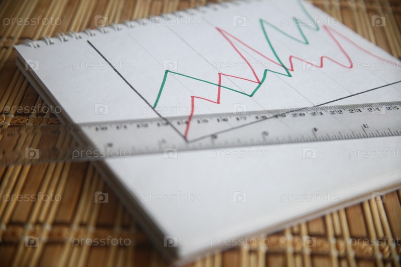 Линейка и график с диаграммами крупным планом
