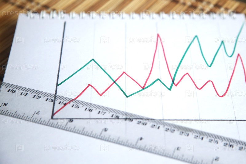 Линейка и график с диаграммами крупным планом