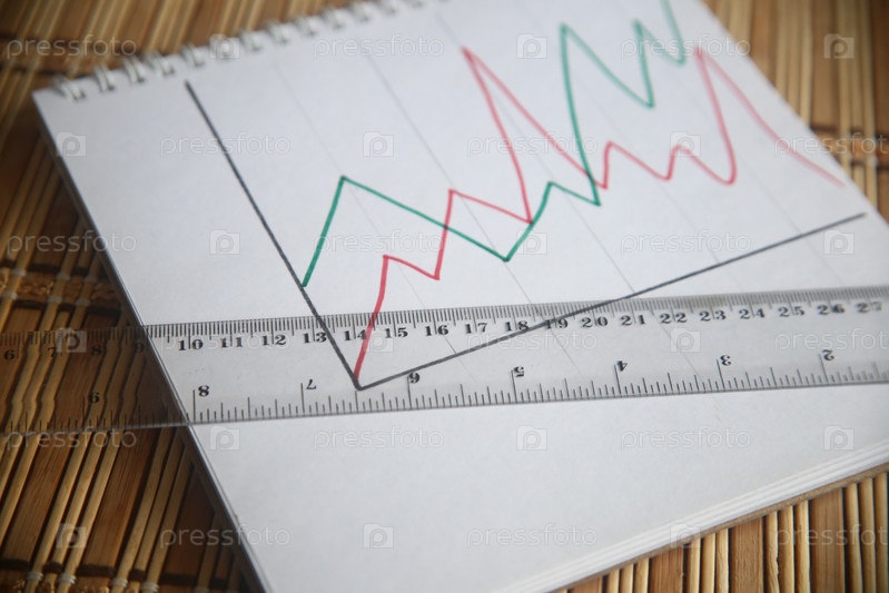 Линейка и график с диаграммами крупным планом