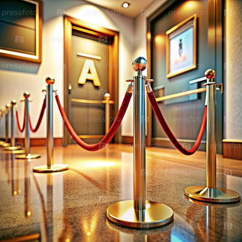 Барьер из красного бархатного веревки, ведущий к дверному проходу с буквой А в коридоре