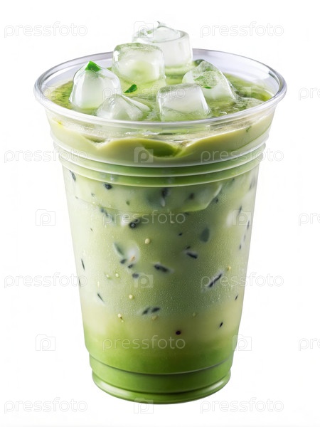 Ледяной зеленый чай латте в одноразовой чашке