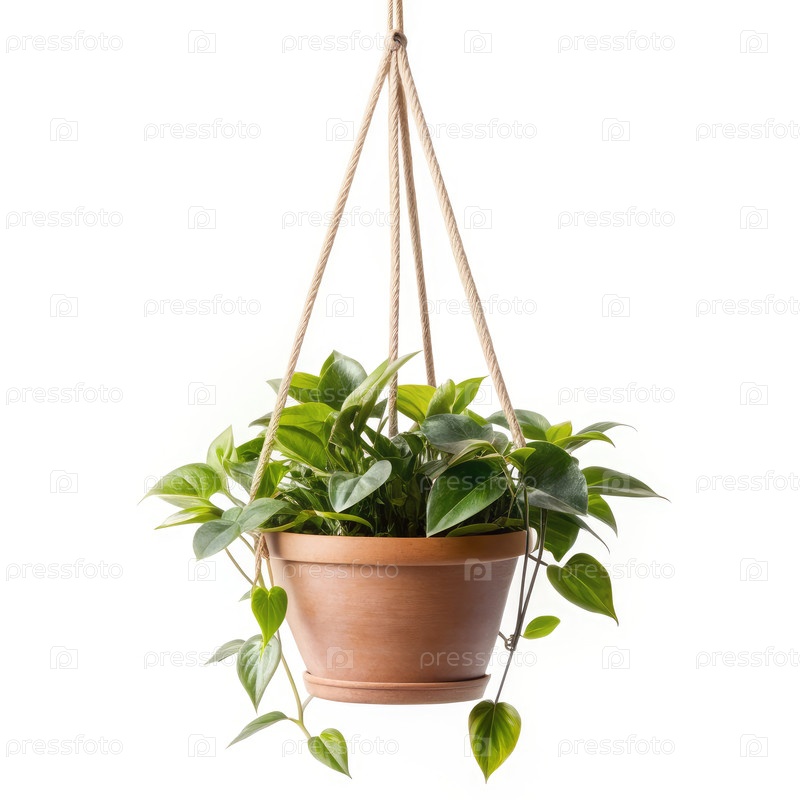 Висящее растение в терракотовом горшке с вешальником на веревке. генеративный AI