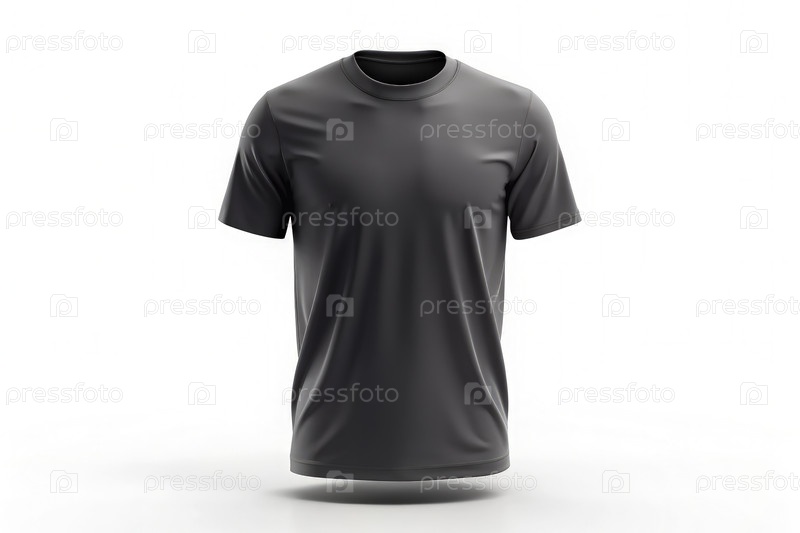 Мокап пустой черной хлопковой футболки - фронт-взгляд, стандартная шкала, белый фон. генеративный ИИ