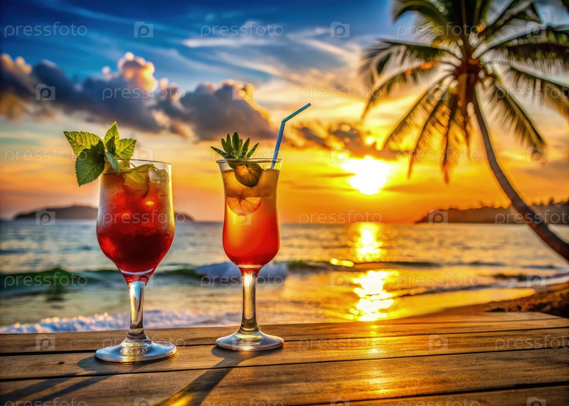 Два коктейля на пляже при закате солнца