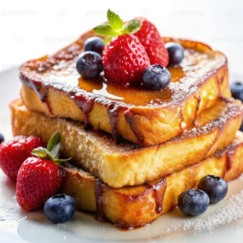 Ближайшее изображение вкусного французского тоста со свежими ягодами и сиропом