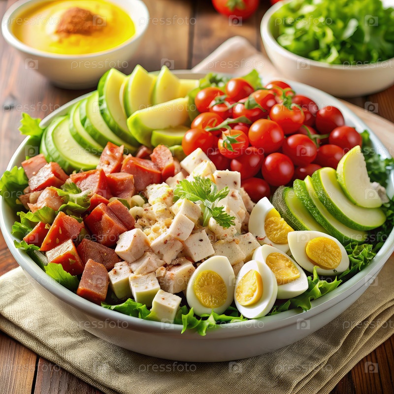 Классический салат Кобба с курицей, авокадо и яйцами