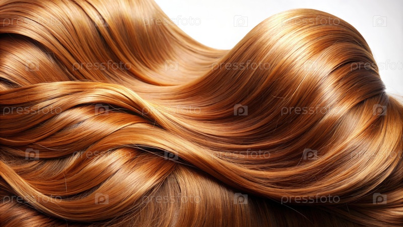 Ближайшее изображение блестящих, здоровых волос на белом фоне