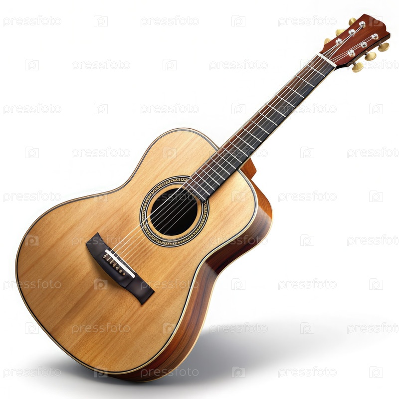 Классическая акустическая гитара на белом фоне