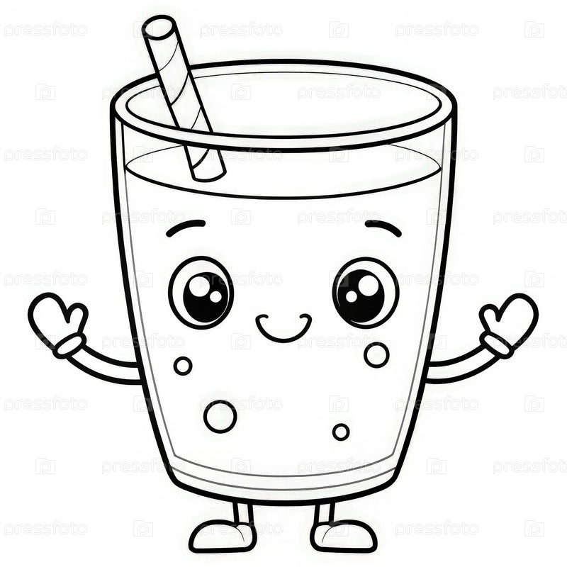 Очаровательная страница для окраски из мультфильмов сок стекла. генеративный AI