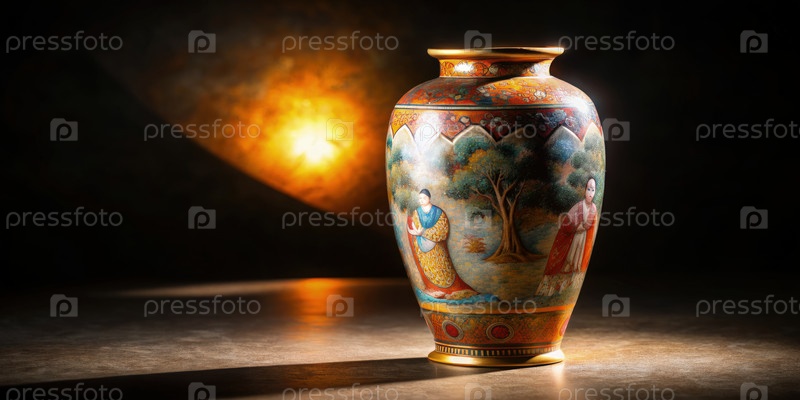 Ваза из вары Сацума с пейзажной сценой и фигурами. генеративный японский ИИ