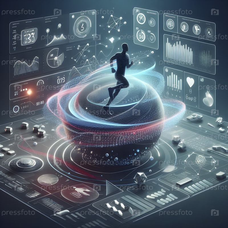 Плавучий интерфейс 3D-рендера - фитнес-приложение со статистикой тренировок, Ai created image