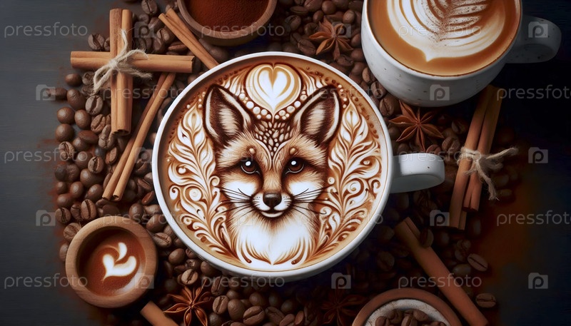Шедевр кофейного искусства, показывающий подробный портрет животных в латте-пене, Ai created image