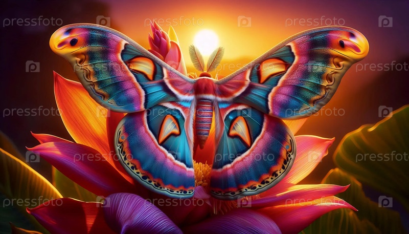 Закатная бабочка на цвете, Ai generated image