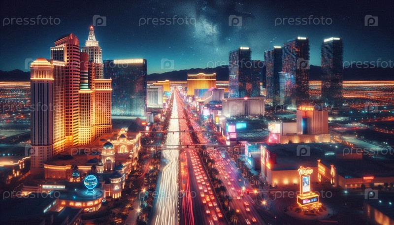 Эффект гиперлапса на Лас-Вегасском Стрипе, Ai generated image