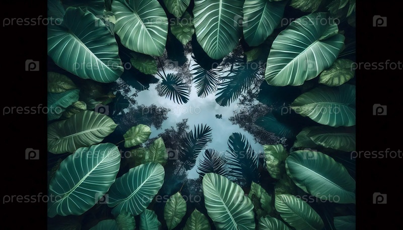 Отражения тропических листьев, Ai generated image