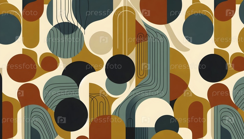 Средневековые современные абстрактные формы детская комната обои - органические формы в горчице, Ai created image