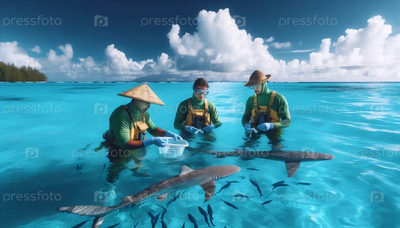 Знаменитые Полинезийские гиды акулы, ИИ сгенерированное изображение