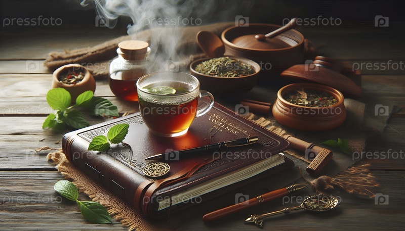Приготовление травяного чая в стеклянном стакане, Ai created image