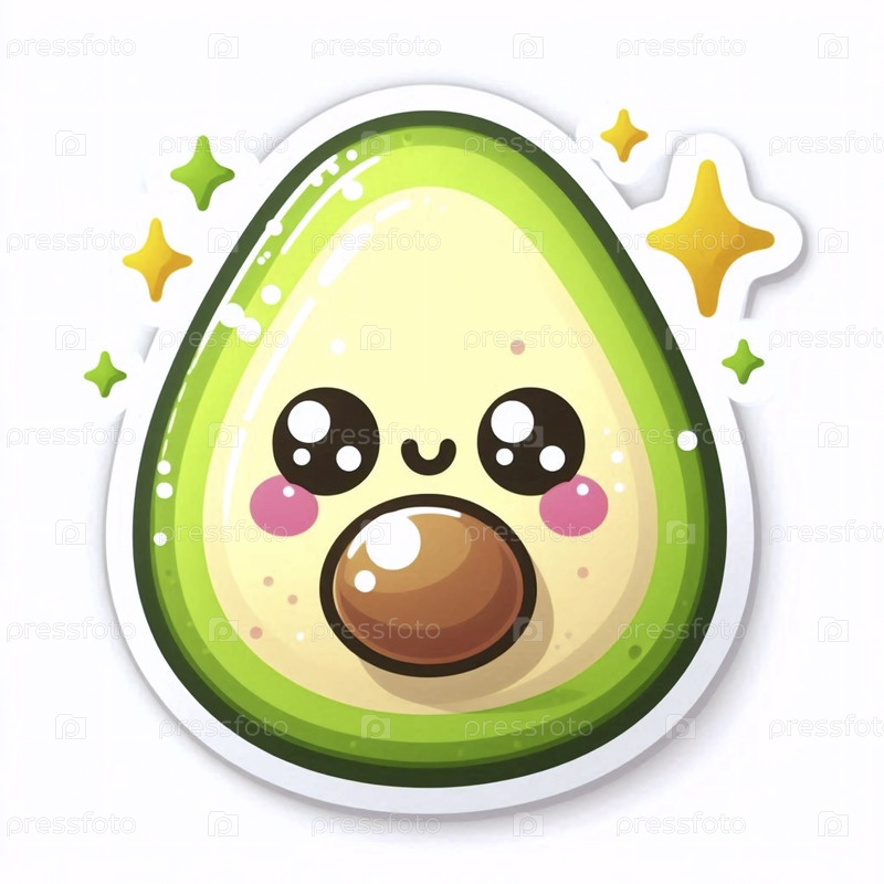 Милый стикер kawaii улыбающегося авокадо, Ai generated image