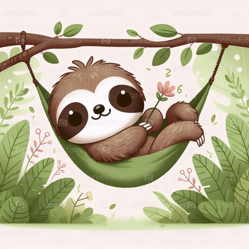 Кавайская сцена ленивца в гамаке, Ai generated image