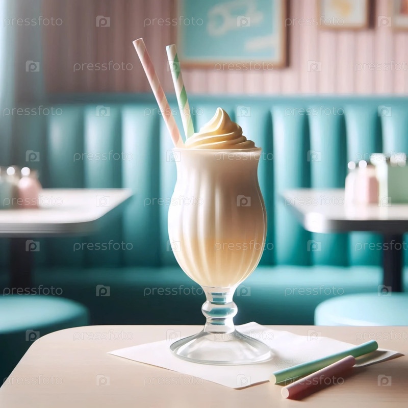 Винтажный молочный коктейль, подаваемый в классическом столовом стакане 1950-х годов Ai generated image