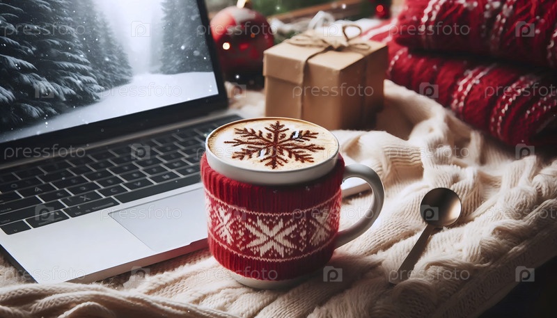Искусство, ноутбук с чашкой кофе, Ai generated image Lat