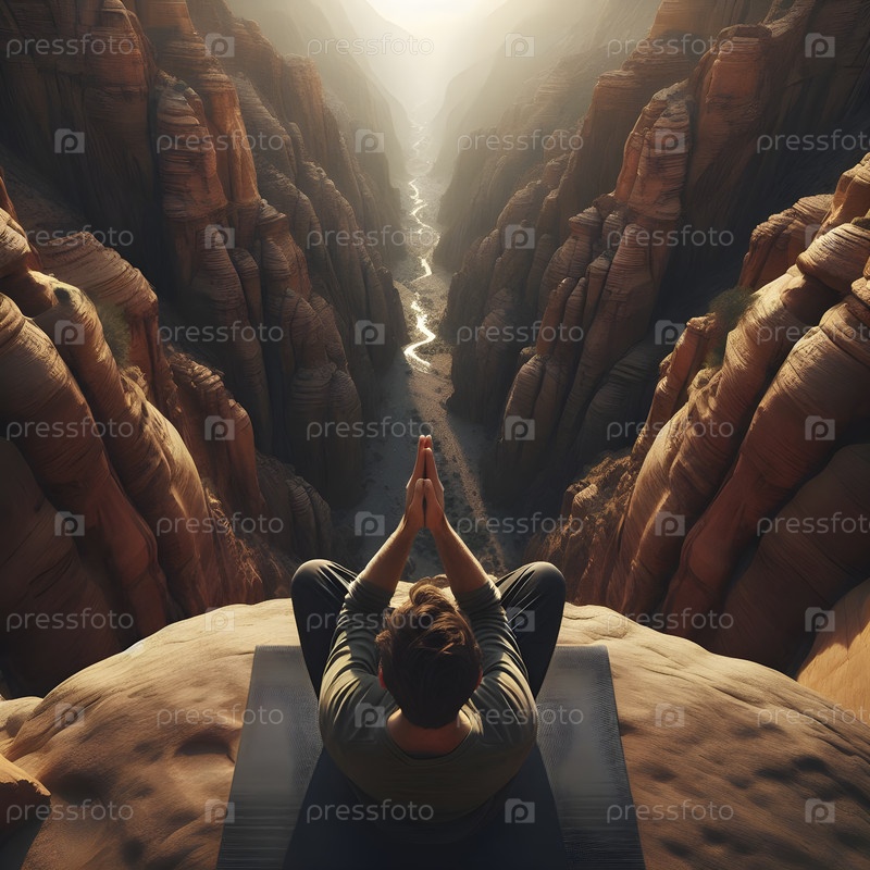 Снимок сверху рук в молитвенном положении на ковре, Ai created image