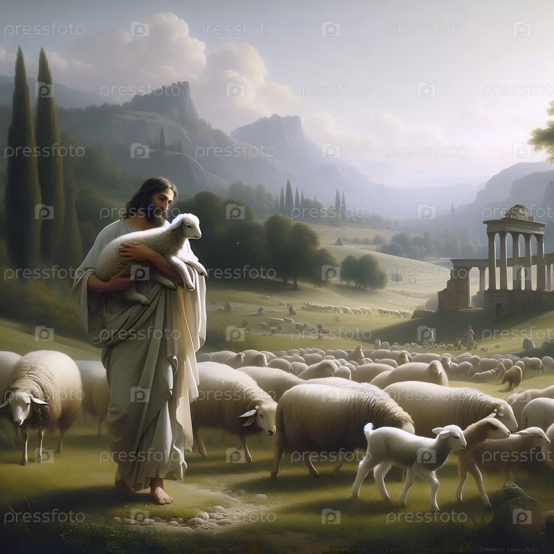 "Добрый пастух" как классическая пастырская сцена, Ai generated image