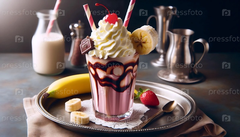 Винтажный молочный коктейль, подаваемый в классическом столовом стакане 1950-х годов Ai generated image