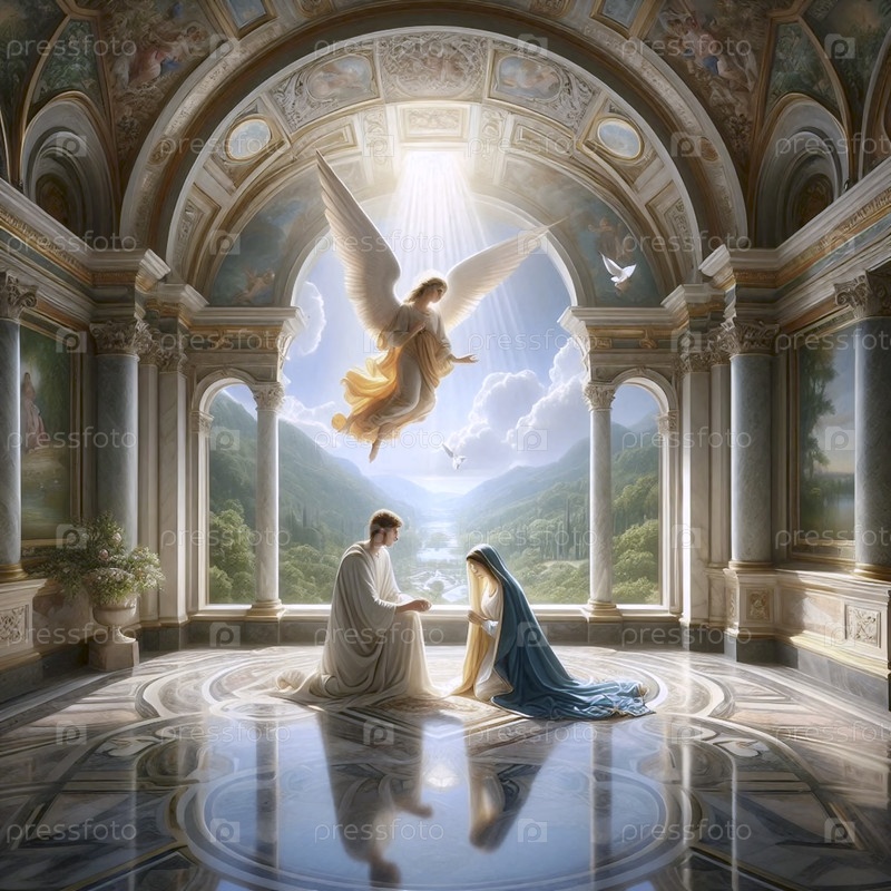 Благовещение в интерьере эпохи Возрождения, Ai generated image