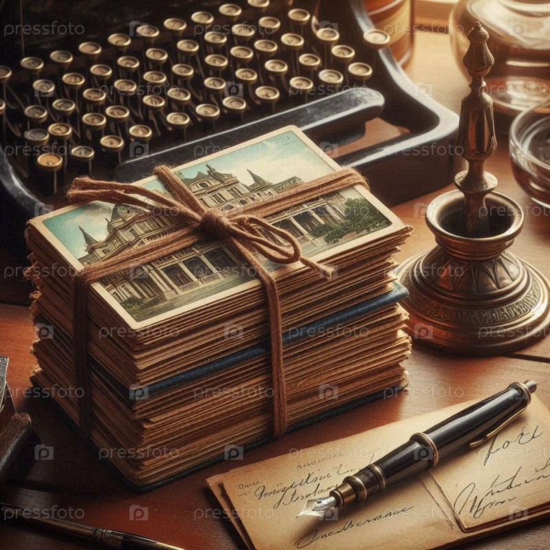 Куча гостиничных открыток начала века, связанных лентой Ai generated image