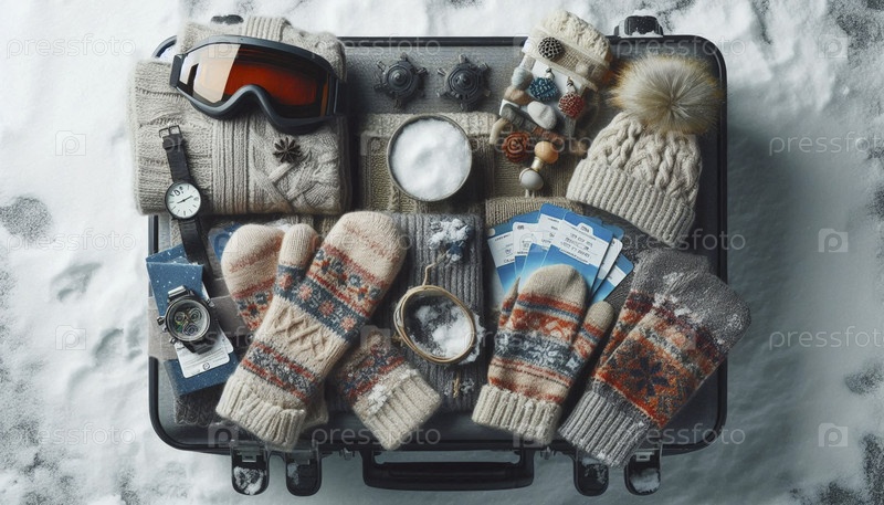 Товары для путешествий, включая багаж, паспорт и билеты на место назначения, Ai generated image