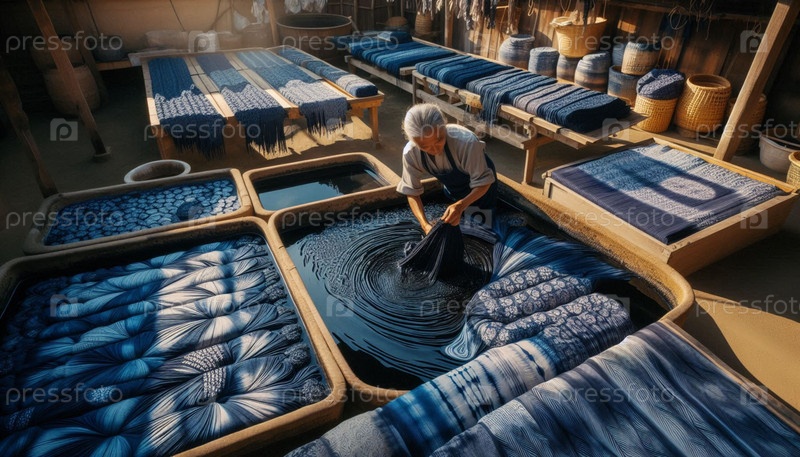 The Japanese Aizome Indigo, AI generated image Японская Айзоме Индиго, ИИ сгенерированное изображение