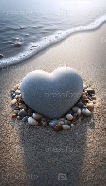 Камень в форме сердца на ложе речных камней, Ай создал изображение