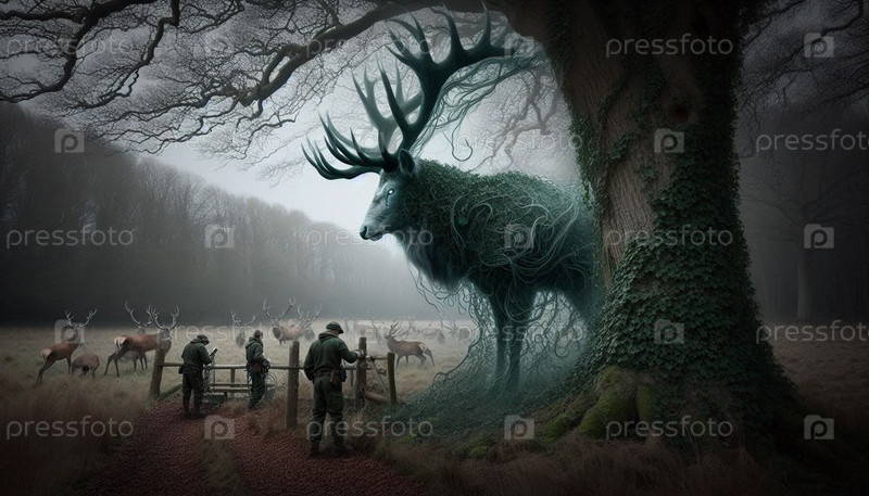 Знаменитый кельтский Олень Дух, ИИ сгенерированное изображение