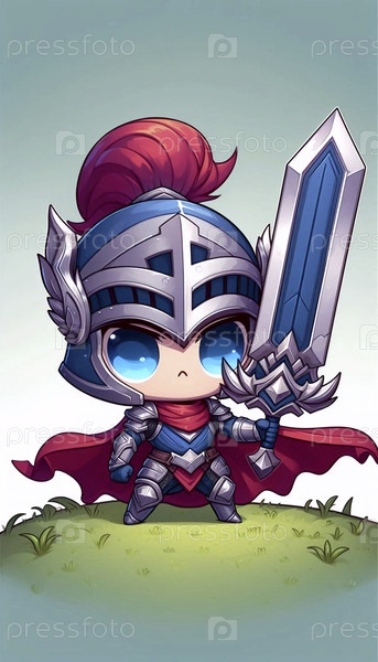 Chibi версия рыцаря фантастической игры, Ai generated image