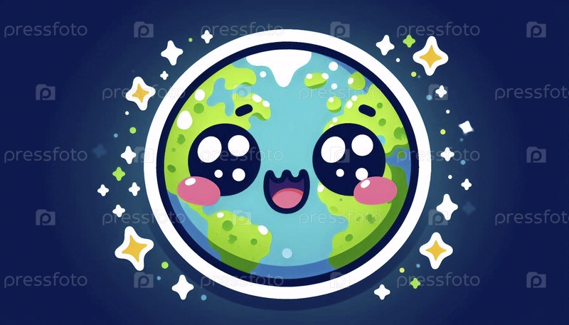 Милый стикер кавайи о удивительной планете Земля, Ai generated image