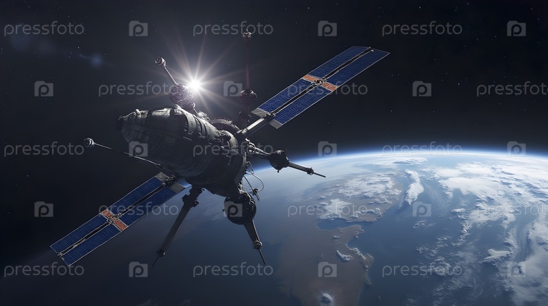 Космический коллектор мусора, вращающийся вокруг Земли, Ai generated image