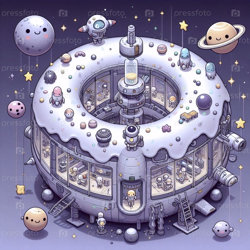 Подробная иллюстрация чиби крошечной космической станции, Ai generated image