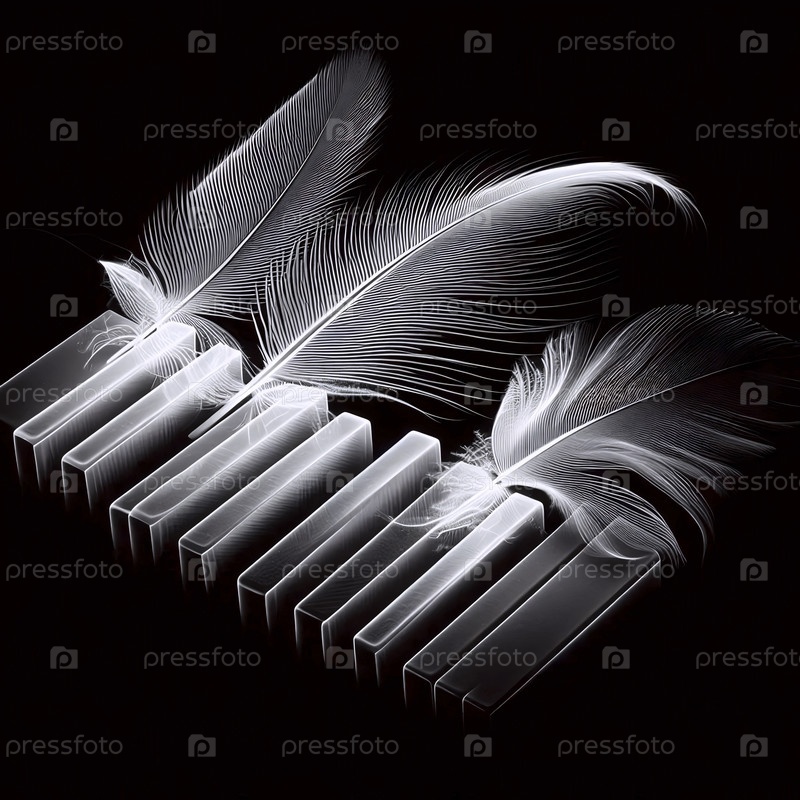 Фотограммная композиция рассеянных клавиш фортепиано и перьев на световом столе, Ай создала изображение