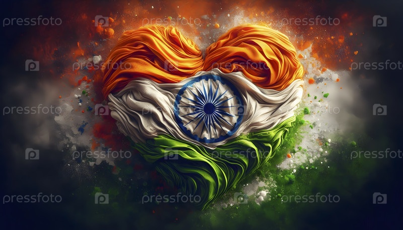 Индийский флаг, реалистичный эффект движения, Ai created image