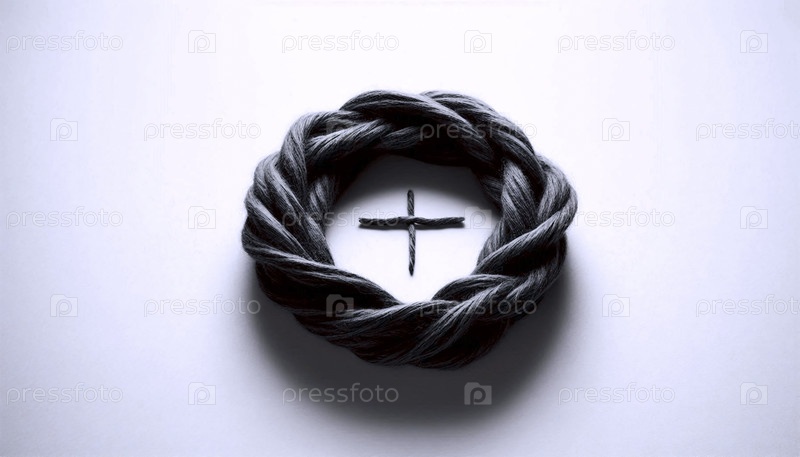Одна грубая шерстяная нить, образующая петлю вечности и крест, Ай создала изображение