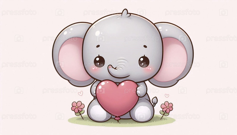 Милый слоненок с воздушным шаром, Ai generated image