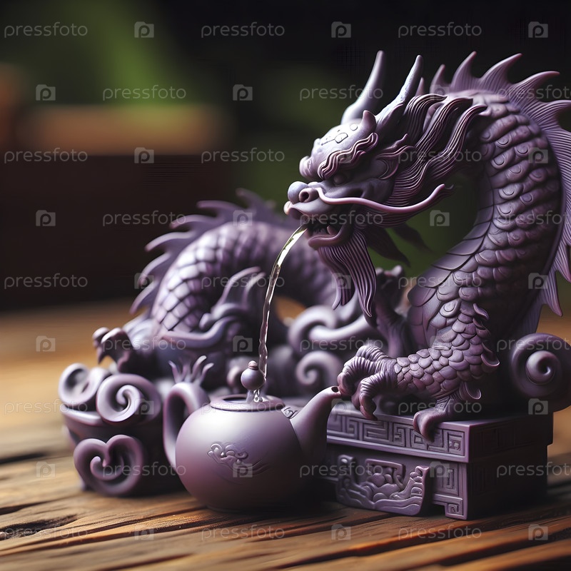 Домашний чайный питомец в форме дракона брызгает воду из крошечного чайника, Ai created image